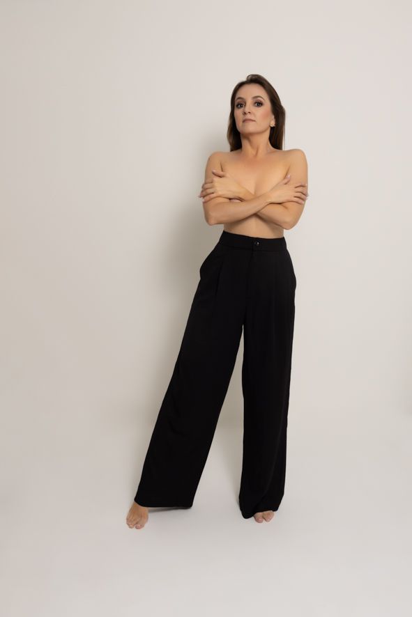 Calça estilo pantalona em crepe